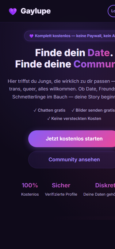 „Die bekannten Gay-Apps haben entweder alles hinter eine Paywall verlegt oder sich so stark auf schnelle Kontakte reduziert, dass echte Begegnungen zur Ausnahme geworden sind. Gaylupe ist meine persönliche Antwort darauf: eine Plattform, die nicht auf Wachstum um jeden Preis optimiert ist, sondern darauf, dass Menschen einander tatsächlich kennenlernen können — kostenlos und ohne versteckte Kosten."